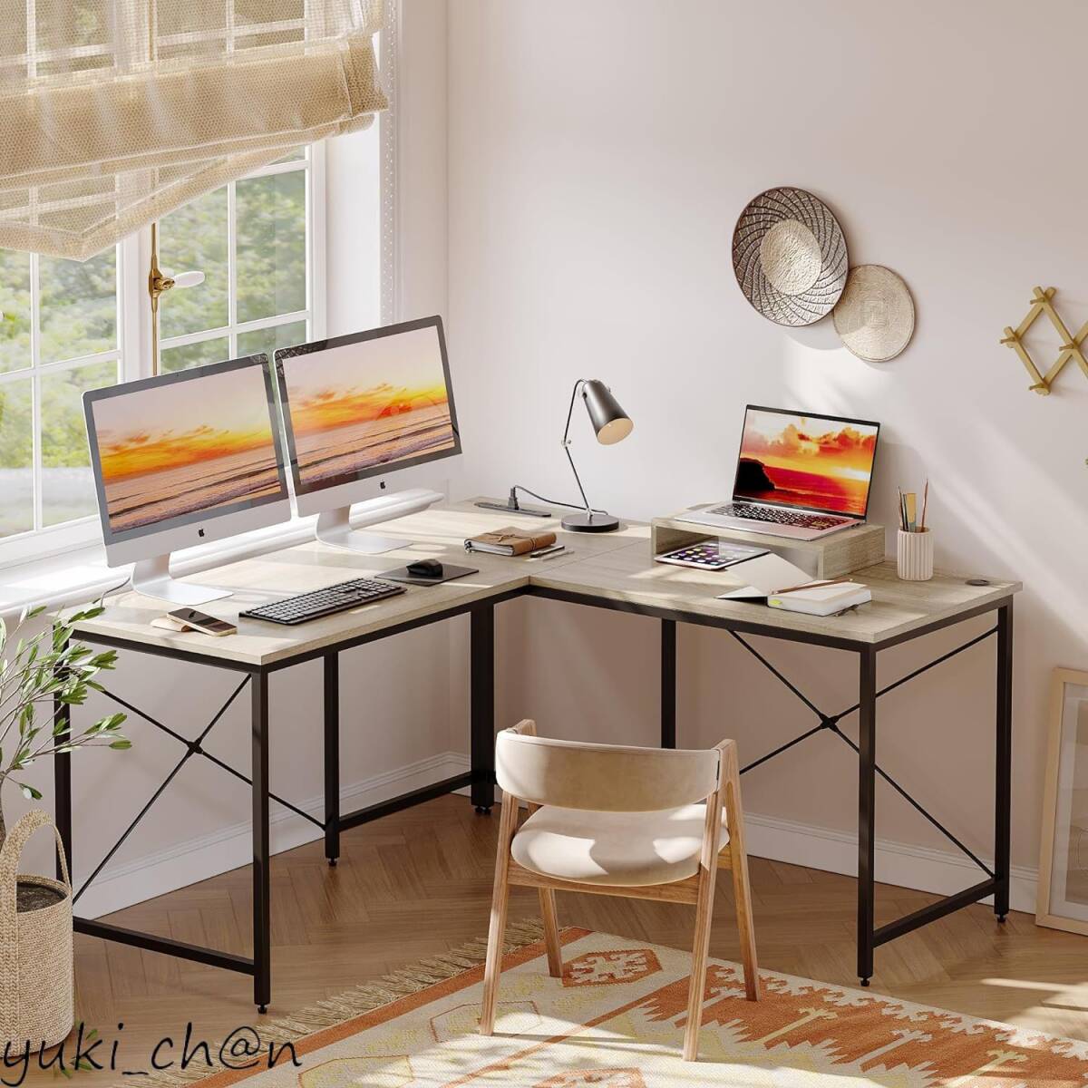 - l字デスク 幅151cm×奥行151cm コンセント付き L字型 コーナーデスク 机 モニター台付き 長机 在宅勤務 オーク