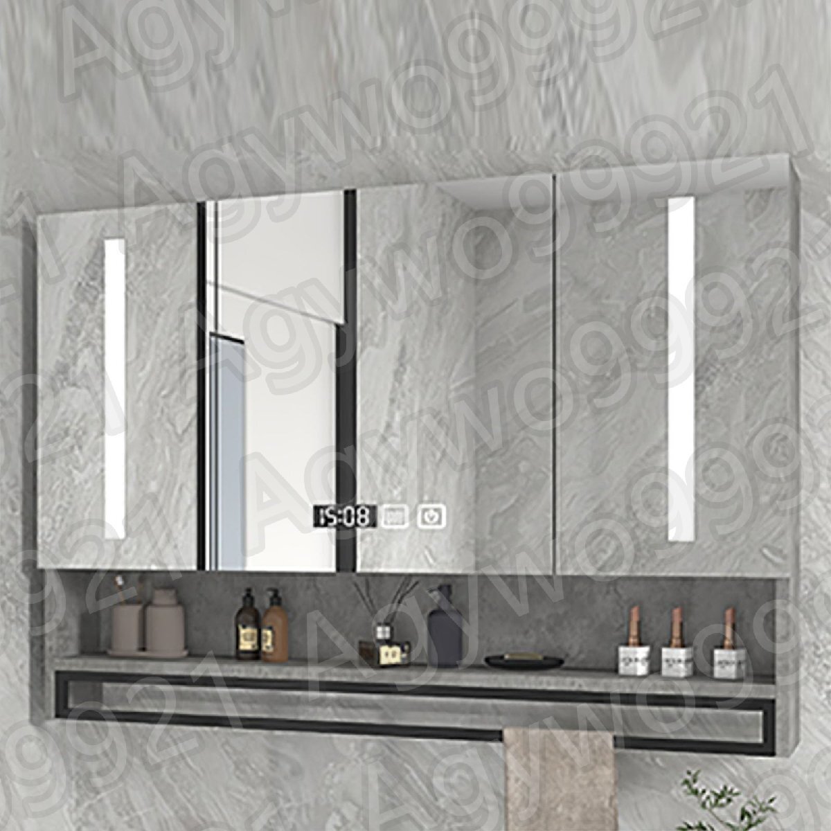 > スマートミラーキャビネット LEDライト付き洗面化粧台 曇り止め洗面鏡洗面台 防水鏡浴室鏡 バスルームミラーキャビネット 高さ80cm 幅120cm