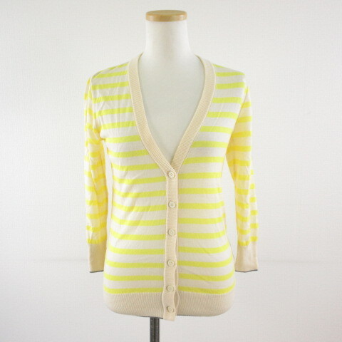 - レイビームス Ray Beams ニットカーディガン 七分袖 ボーダー ライトベージュ 黄 *T314 レディース