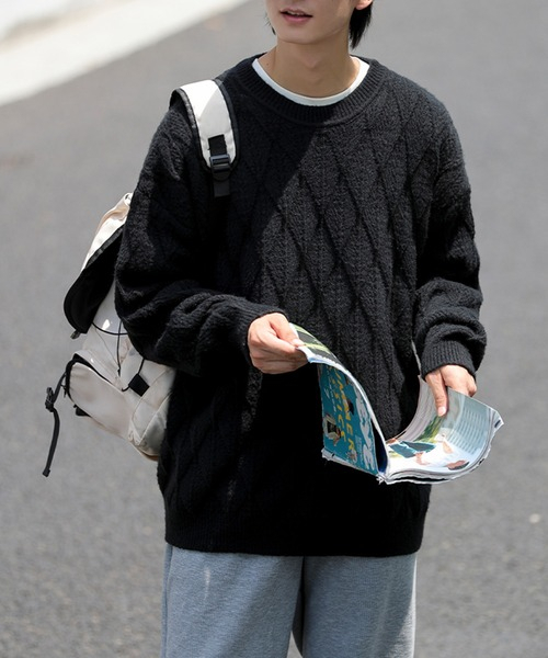 - HOOK フック ニット カットソー キルティングパターン BLK サイズM