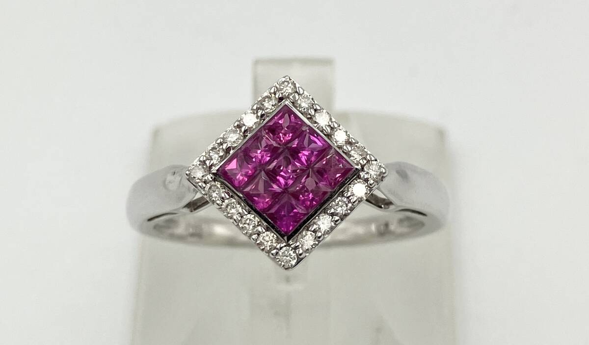 > 【新品仕上げ済】【鑑別書付き】K18WG(総3.0g)#13 天然ルビー 天然ダイヤモンド ダイヤ0.1ct ホワイトゴールド リング 指輪