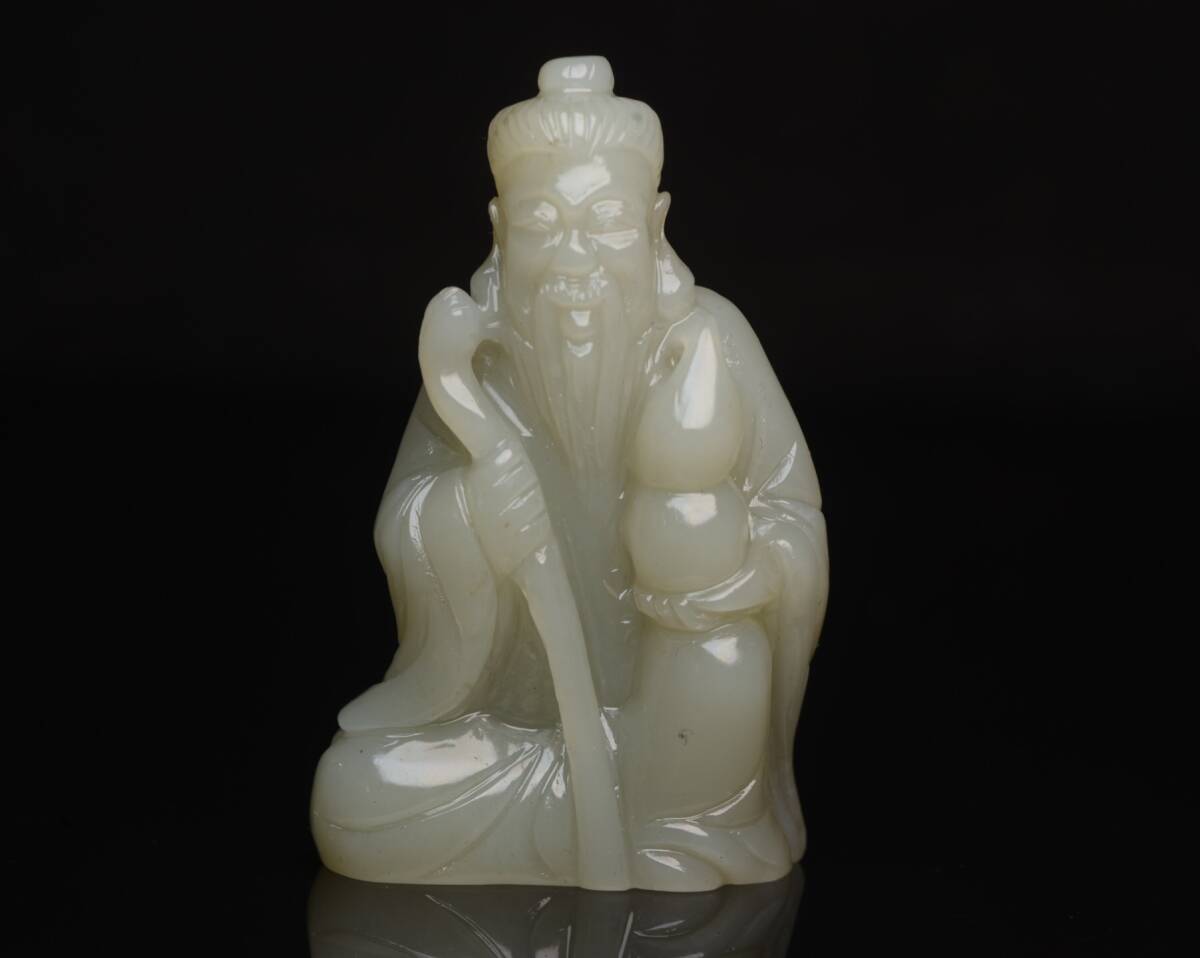 - 【仁】『和田玉製・細密彫・老人・置物・賞物』極細工 古賞物 中国古玩 古美術 古美味