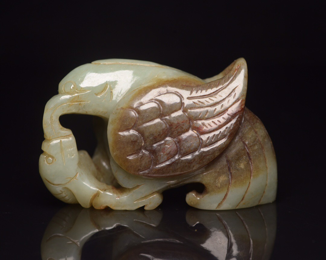 - 【超珍館蔵】和田玉製 細密彫 玉鳥 置物 古賞物 古美術品 稀少珍蔵品