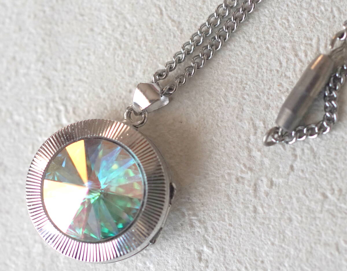 - レトロ ヴィンテージ レインボーカラーのガラスストーン付き ロケット ネックレス オーロラカラー