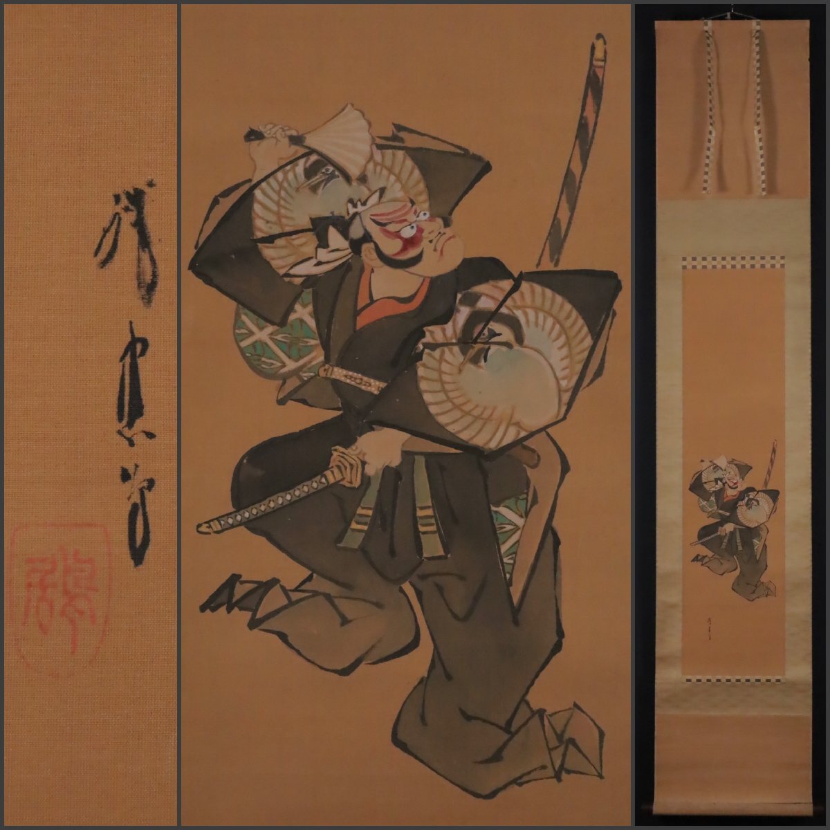 > 【模写】吉】12015 四代目 鳥居清忠 暫図 鳥居派7代目 浮世絵師 歌舞伎 鳥居清貞師事 風俗画 茶掛け 茶道具 掛軸 掛け軸 骨董品