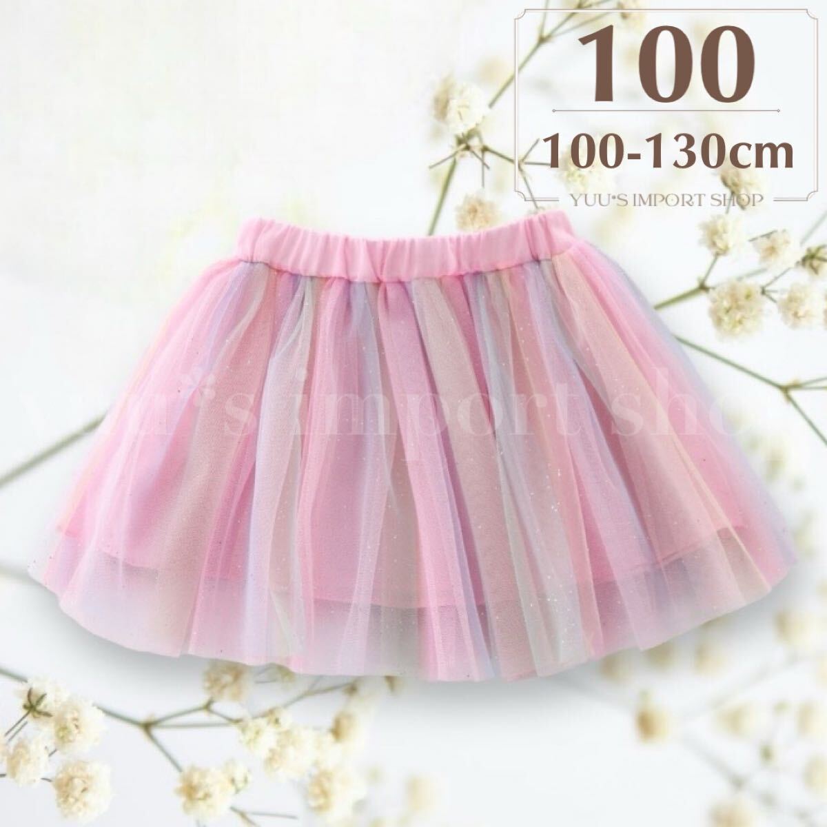 > スカート 100 女の子 ミニ チュール チュチュ ピンク カラフル レインボー ダンス 衣装 バースデー 誕生日 イベント 姉妹コーデ お揃い