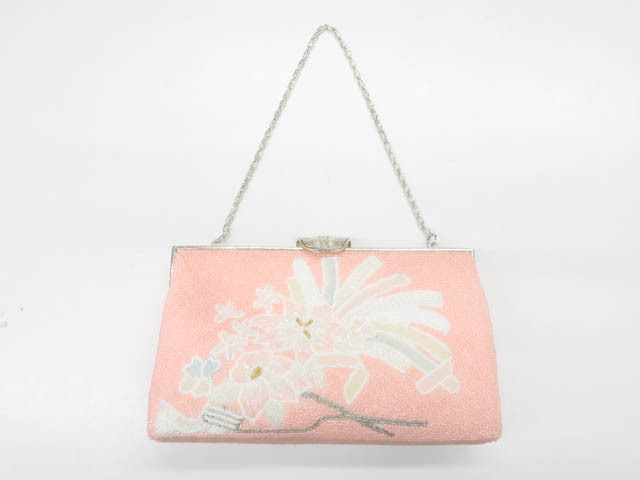 - 《京都一輝堂》【着物】和装小物 ビーズバッグ 花模様 r7w02-618