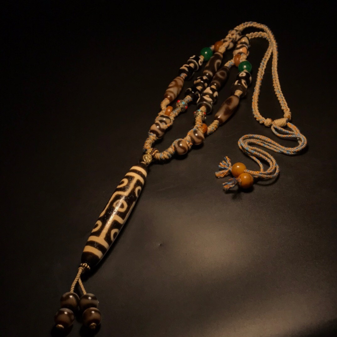 - ▽鴻▽ 瑪瑙製 細密彫 折線九眼天珠鎖骨ネックレス 置物 古賞物 中国古玩 中国古美術