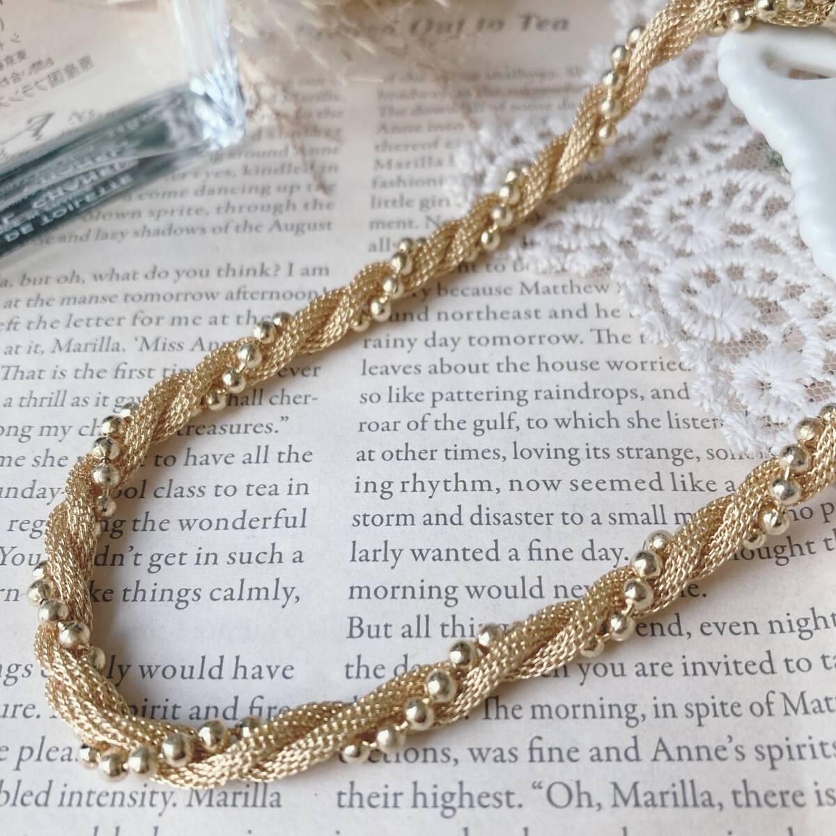 > ネックレス ショート チョーカー ゴールド ツイストチェーン ゴールドビーズ 美品☆Vintage jewelry accessories R0315