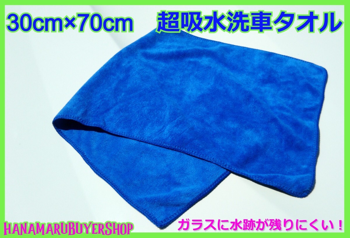 - 超吸水! 洗車タオル 30×70cm 水跡が残りにくく使いやすいマイクロファイバーです! 青 家の掃除 お風呂にも! 柔らか