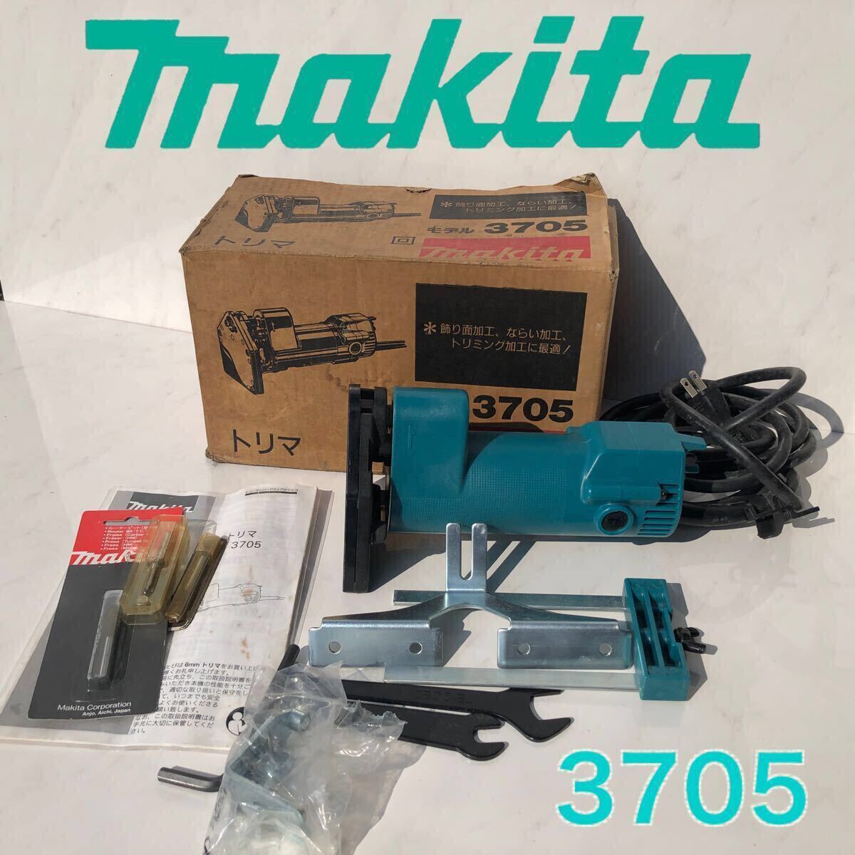 - 【美品】makita マキタ トリマー 3705 100V 電動工具 ストレートビット 3本付 [壁面に接近した場所に最適]