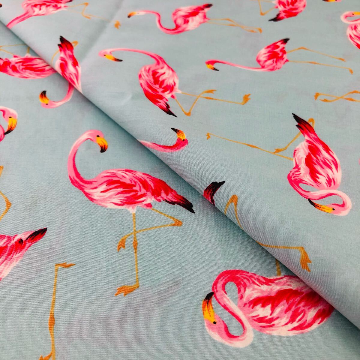 - 1m 日本製 かわいいフラミンゴ ブロード 生地 はぎれ コットン セブンベリー 110×100 フラミンゴ