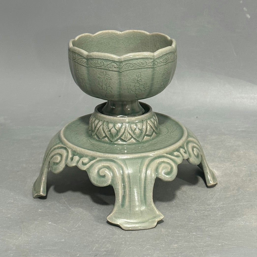 - ▼渡鶴羽▼E875『朝鮮時代旧蔵』朝鮮古陶 朝鮮古美術 高麗磁 古高麗 李朝 高麗青磁盞托