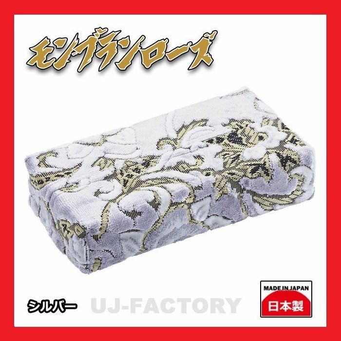 - 【MIYABI/ティッシュカバー(日本製)】★モンブランローズ★シルバー(ビニール無し) バラとモンブラン柄の融合したモダンな金華山