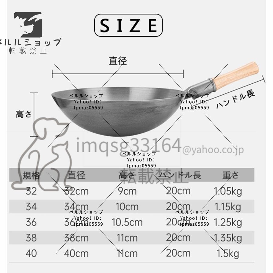 - 中華鍋 炒め鍋 手作り鉄鍋 焦げ付きにくい炒め鍋 中華料理 鉄製 省エネ ガス代節約 軽くてサビにくい鉄のいため鍋 ガス火専用 38cm