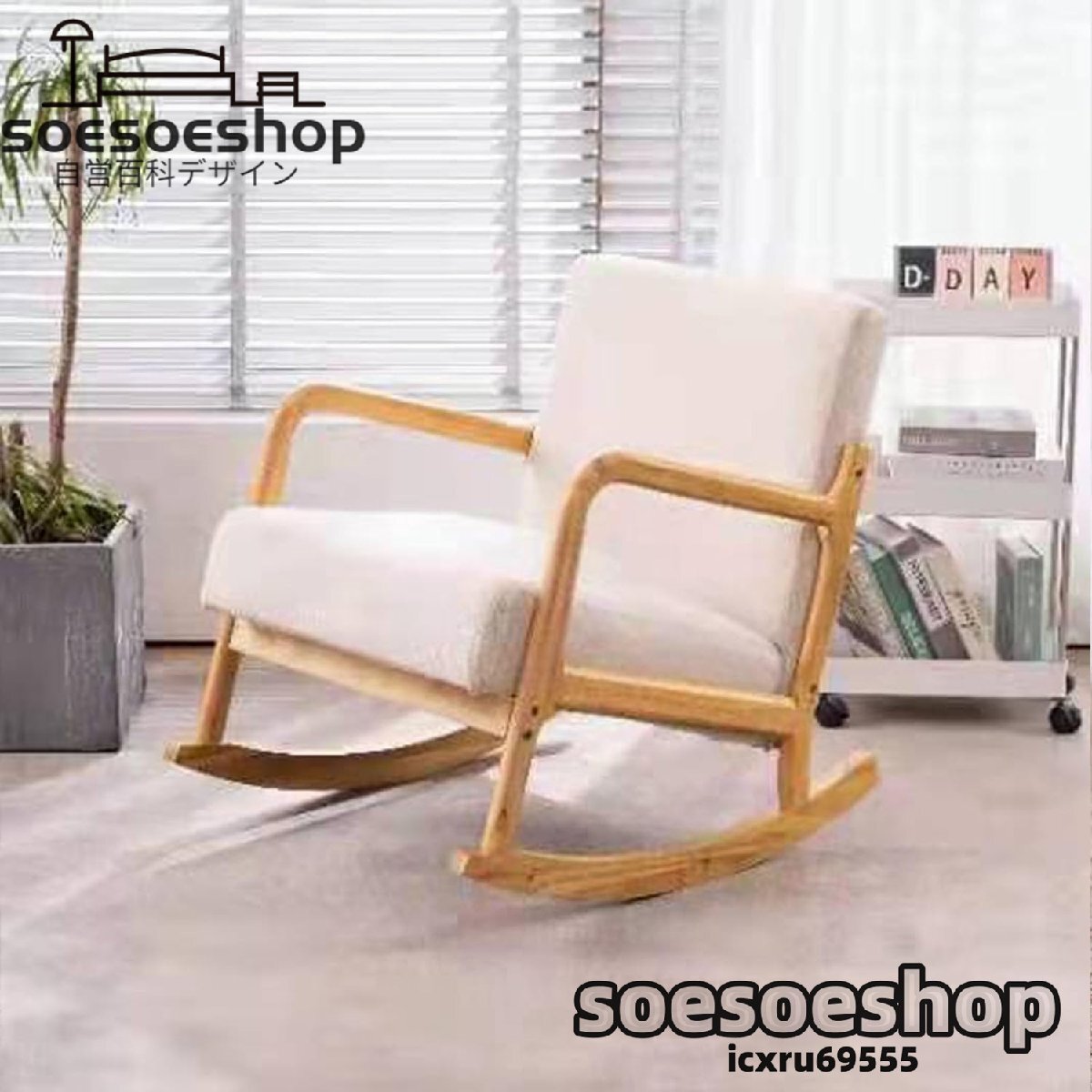 - 無垢材ロッキングチェア、おとななじみバルコニーリビングルーム用シングル怠惰な昼寝椅子、リクライニングソファチェア ホワイト