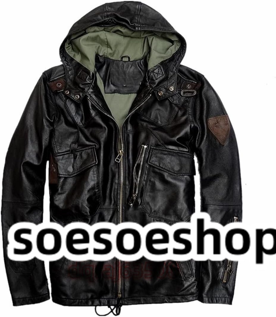 - ヨーロッパのウインドブレーカーコートフード付きラムキンレザージャケットとコートメンズレザーシープスキンジャケットコート