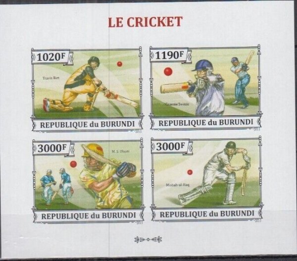 - ブルンジ切手『クリケット』無目打 4枚シート 2013