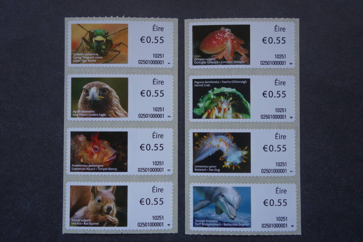- 外国切手: アイルランド切手 「(自動化切手) アイルランドの動物と海洋生物 (1次)」8種完(4種連刷×2) 未使用、