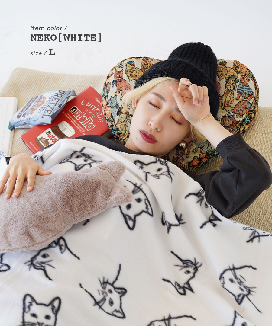 - ★フリースブランケット 白地 ねこ Lサイズ
