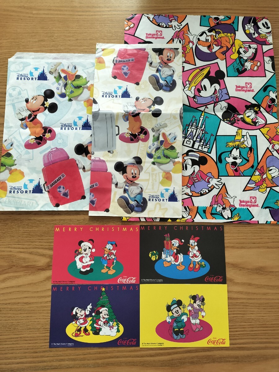 - Disney コカ・コーラ ポストカード4枚・ レトロ紙袋3枚