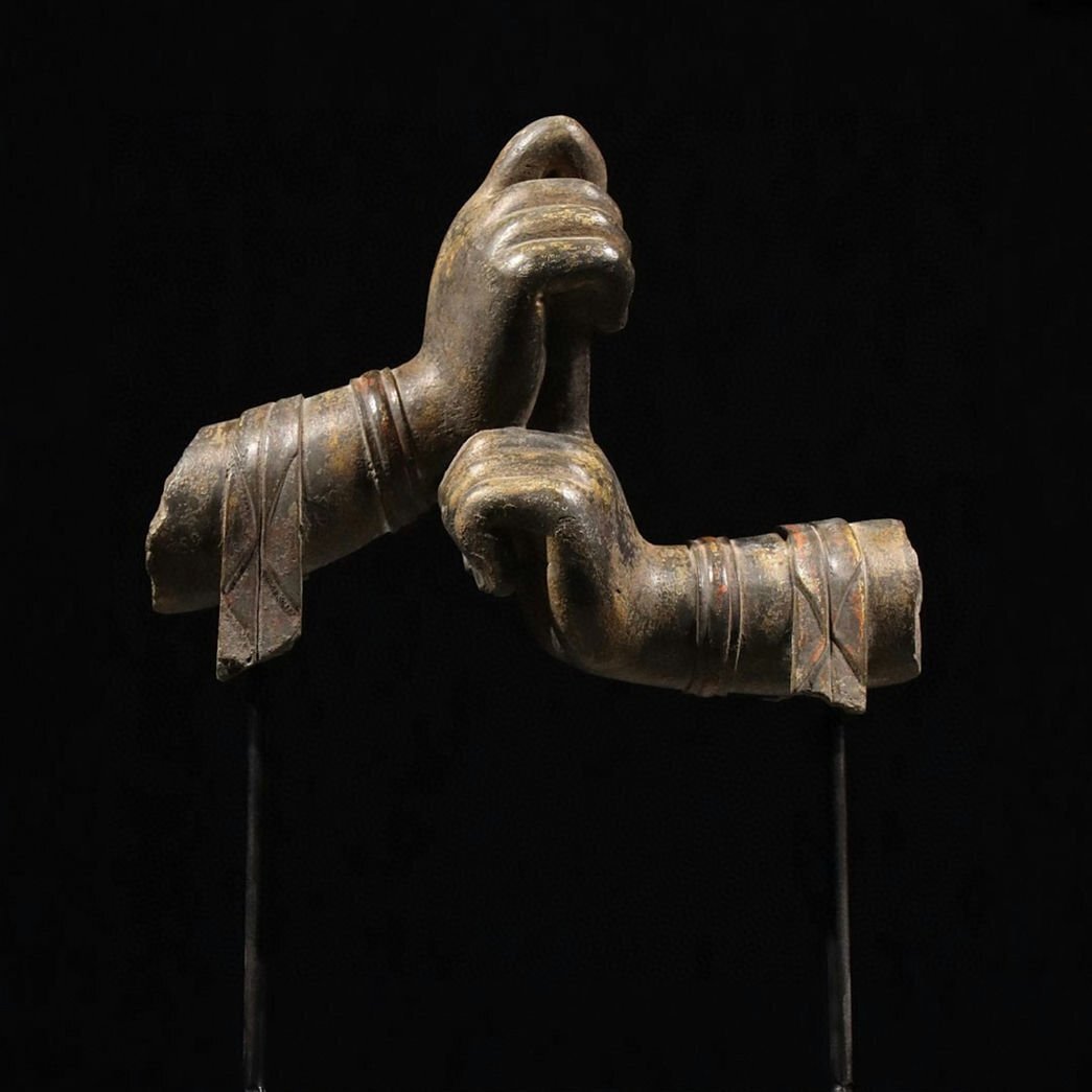 - ▼渡鶴羽▼E1453唐時代 青石仏手 智拳印 青石 細工彫刻★仏教古美術★仏像★細密細工★廃寺旧蔵★廃寺買出品