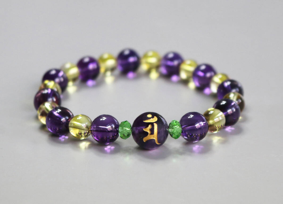 - アメジスト・シトリン「干支梵字」(文殊菩薩=卯年)ブレスレット 18cm