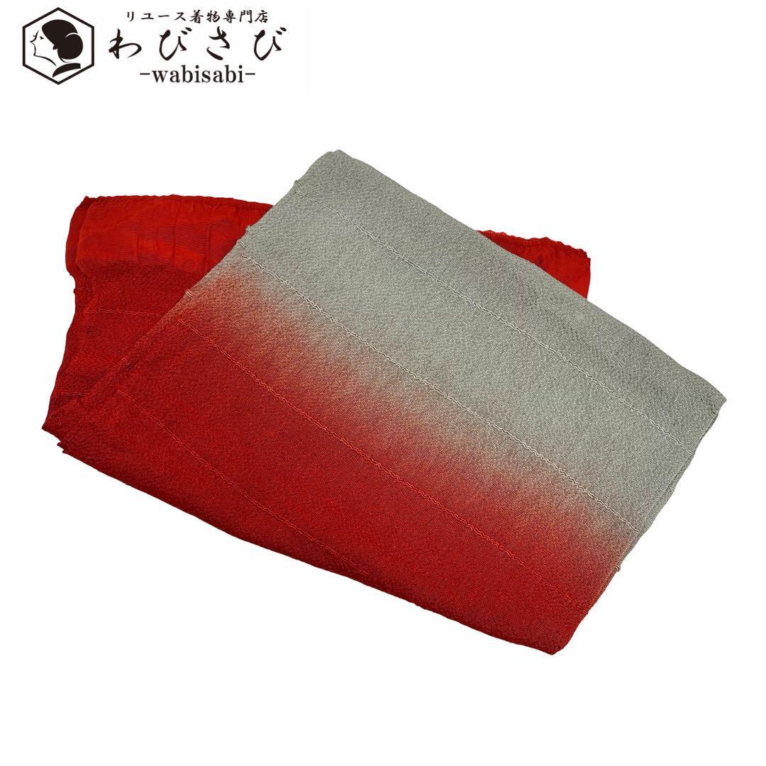 - 和装小物 帯揚げ 正絹 美しい染め分け 真紅色 縮緬 C-5589 着物 きもの kimono 和服 和装 中古 リサイクル着物 【送料無料】