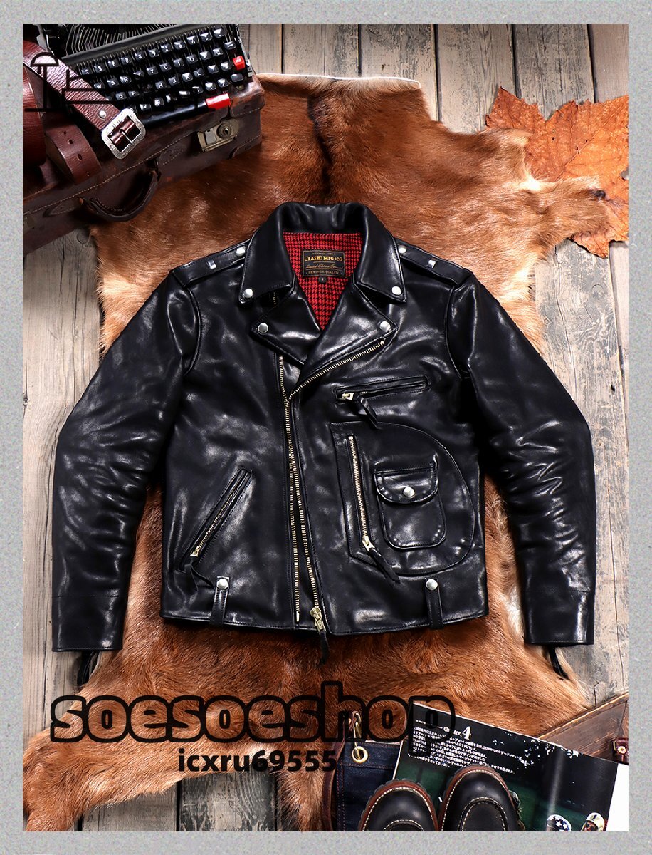 > ダブルライダース レザージャケット レトロ 革ジャン カウハイド 本革 アメカジ 牛革 1.5mm バイクレザー メンズファッション M~4XL