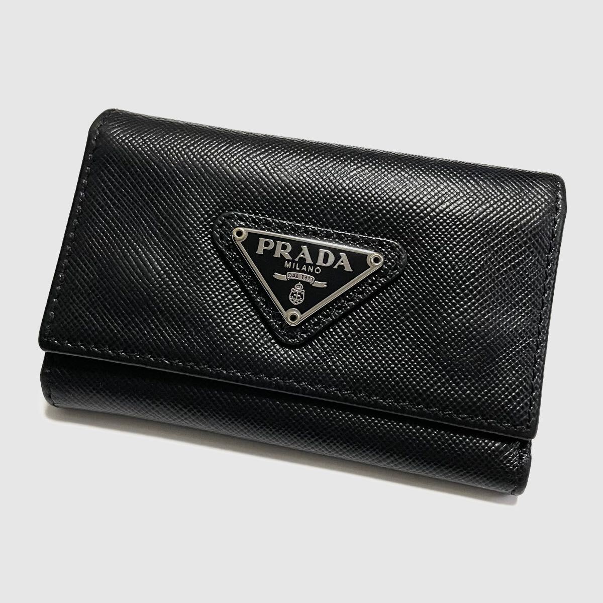> ★PRADA プラダ 6連 キーケース 三角ロゴ サフィアーノレザー ブラック 黒【鑑定済み 本物保証】