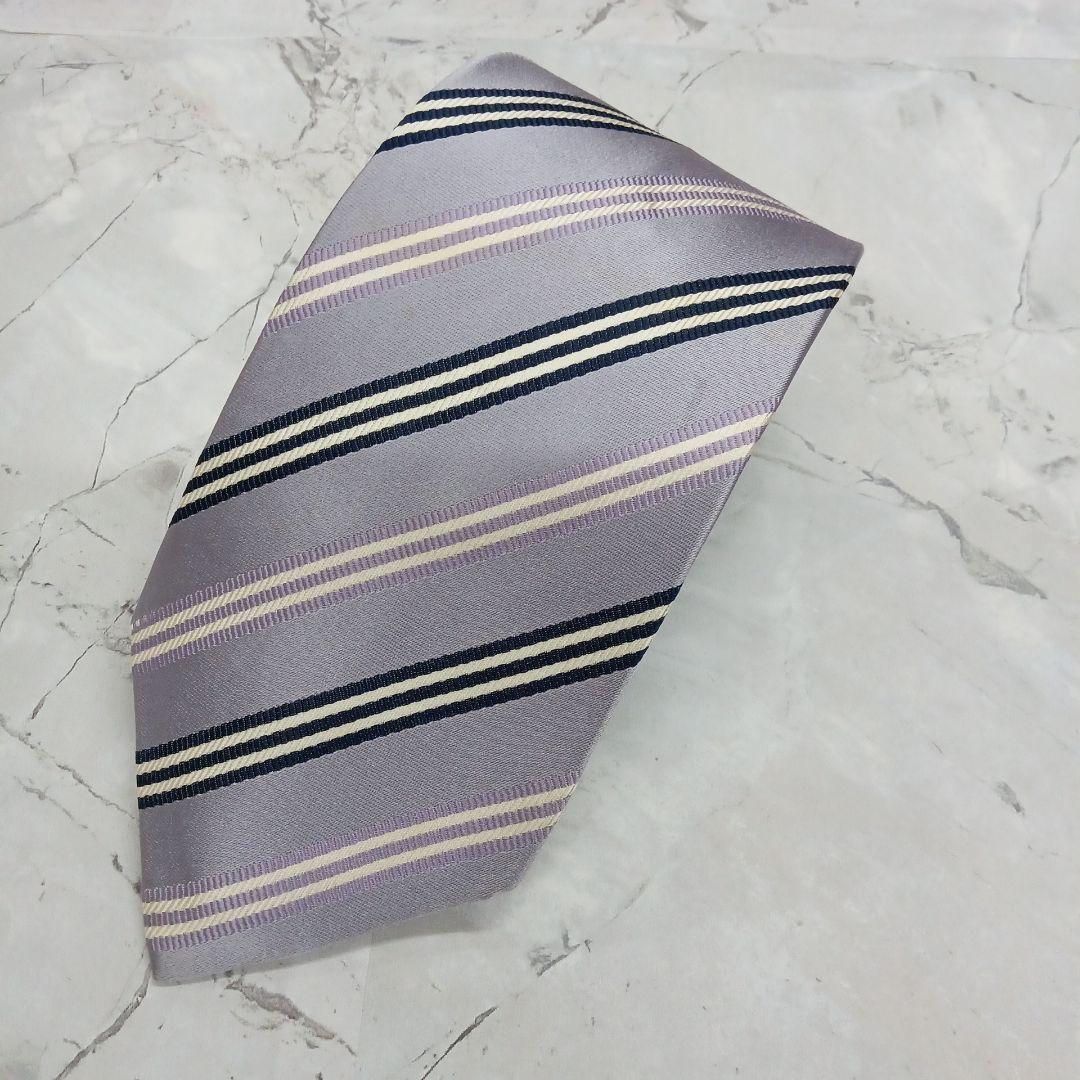 - 麻布テーラー ネクタイ 紫 ストライプ シルク100【n456】