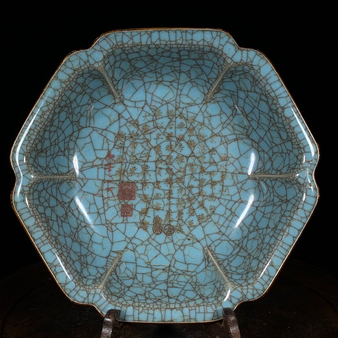 - ▽鴻▽ 宋 官窯 冰裂紋 包口 銘文葵口洗 古陶瓷品 置物 古賞物 中国古玩 中国古美術