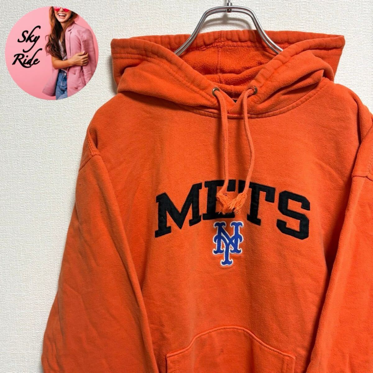 - Lee リー メンズ ヴィンテージ MLB ニューヨークメッツ 胸ロゴ プルオーバーパーカー フーディー オレンジ L 古着 #UY0005