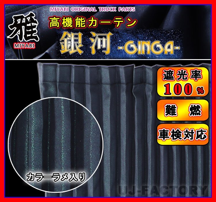 > 【MIYABI/車検対応】★ 仮眠カーテン 銀河(意匠登録済み)★ブラック×グリーンラメx2枚組 汎用サイズ:2400mm× 850mm 遮光性100%