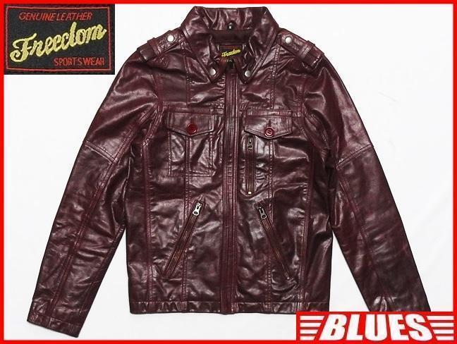 - 即決★Freedom★メンズS レザーライダース風ジャケット フリーダム 赤 レッド 本革 フラップポケット 本皮 アウター 革ジャン