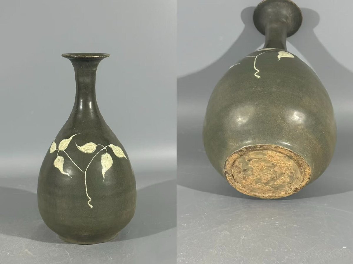 > ▼渡鶴羽▼R0135『朝鮮時代旧蔵』朝鮮古陶 朝鮮古美術 高麗磁 古高麗 李朝 高麗黒青磁玉壺春瓶 ★高さ32cm