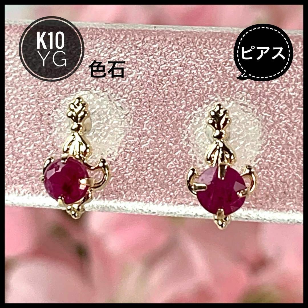 - K10 YG 色石(ピンク)ピアス 総重量 0.21g レディース