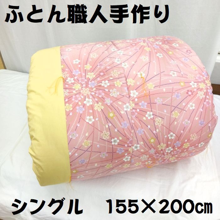 - 送料無料 お買得 全国コンクール入賞の熟練ふとん職人の手作り綿わた掛けふとん シングル 155×200㎝ 中身 綿50% ポリエステル50%