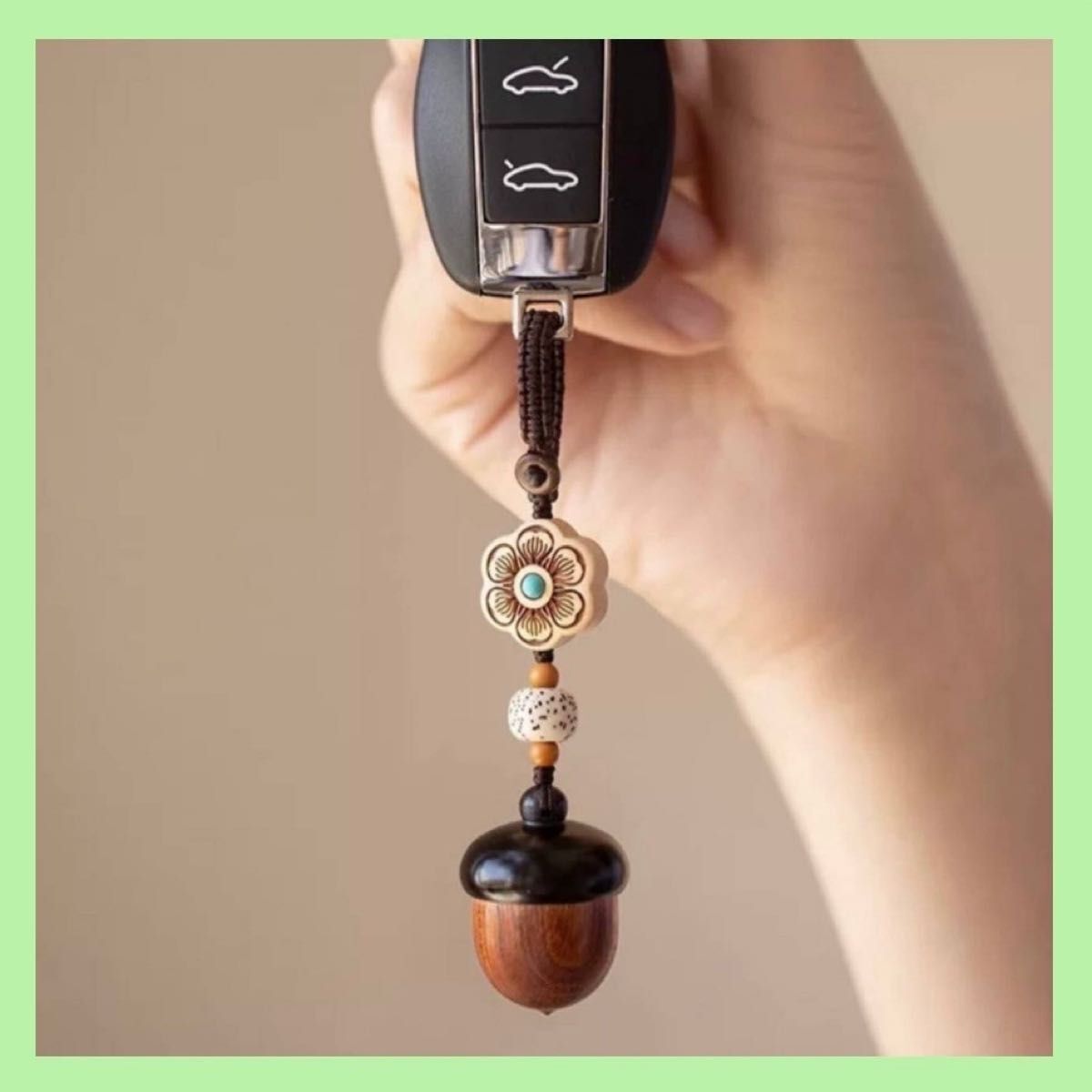 - どんぐり ピルケース メモリアルペンダント 木製 キーホルダー お薬 携帯 旅行 ライトブラウン