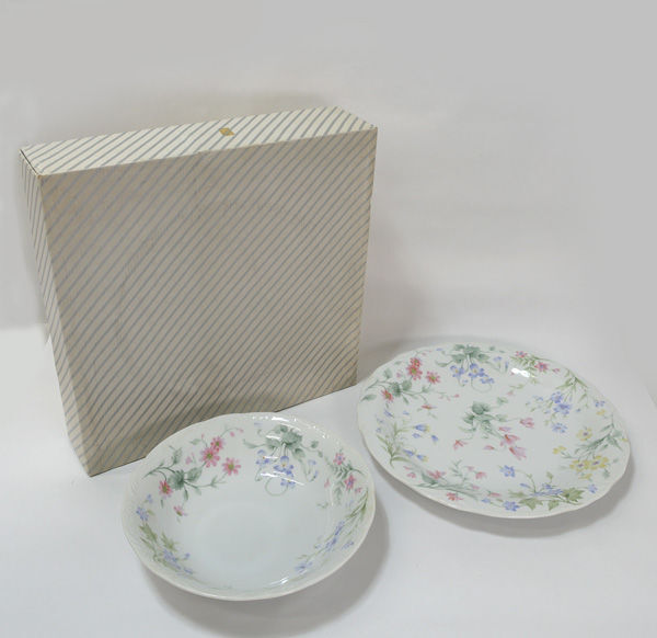 - ★ ナルミ 洋食器 ボウル&プレートセット 白磁 花柄 7402(0220516581)