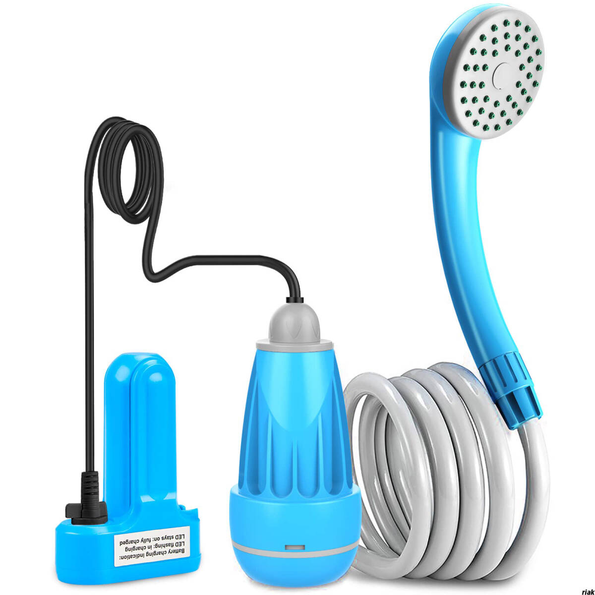 - 【独自の浄水システム搭載で、安全できれいな水を使用可能】ポータブルシャワー 電動式 キャンプ・サーフィン・海水浴 屋内・屋外兼用