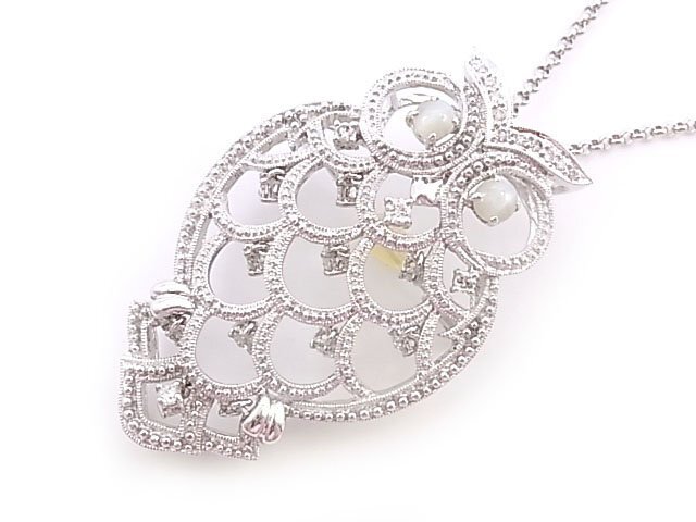> g20558 K18WG/18K フクロウ クリソベリルキャッツアイ1.05ct D0.80ct ネックレス USED 美品 23.2g 50cm アジャスター付新品チェ
