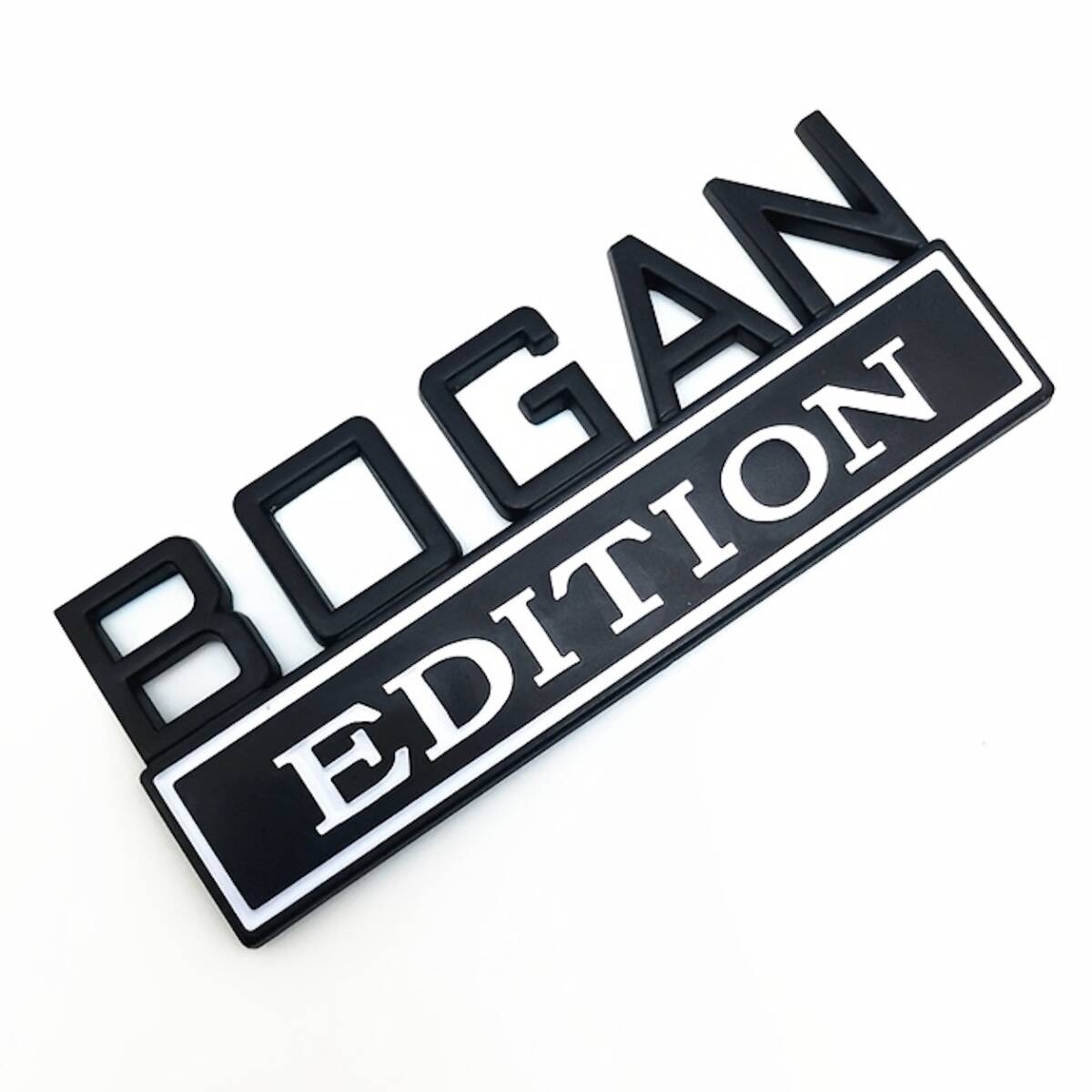 > エンブレム エディション ボーガン BOGAN おしゃれ 金属 ブラック ホワイト 黒白 メタルステッカー 立体 8cm 車用 ロゴ 外装 シール t5234