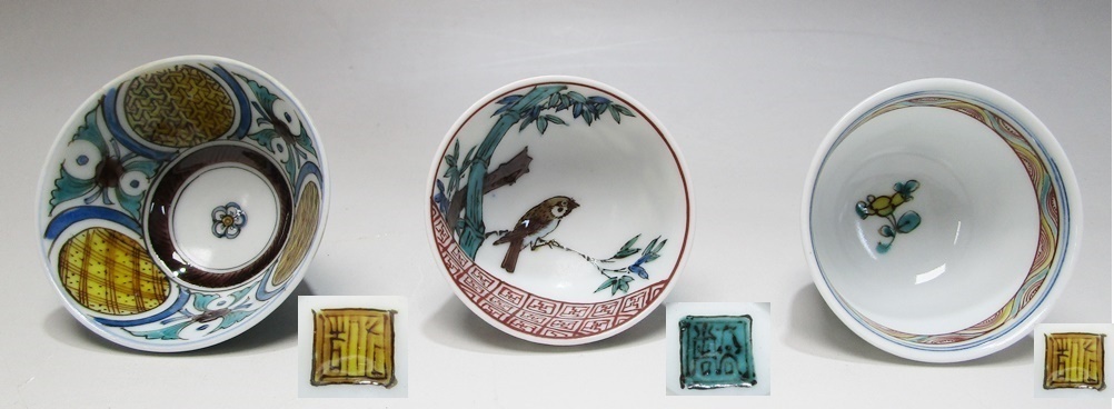> 《ジャムルK》KKg0114-49◆送料無料◆ 九谷焼 初代 徳田八十吉 松本佐吉 盃 酒盃 酒器 ぐい