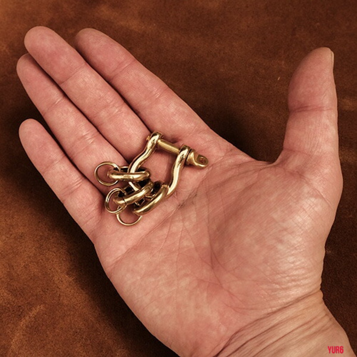 - 真鍮製 3連リング シャックル型 キーチェーン ヴィンテージ感 高級感 バイク バイカー ツーリング 普段使い キーホルダー ブラス お洒落