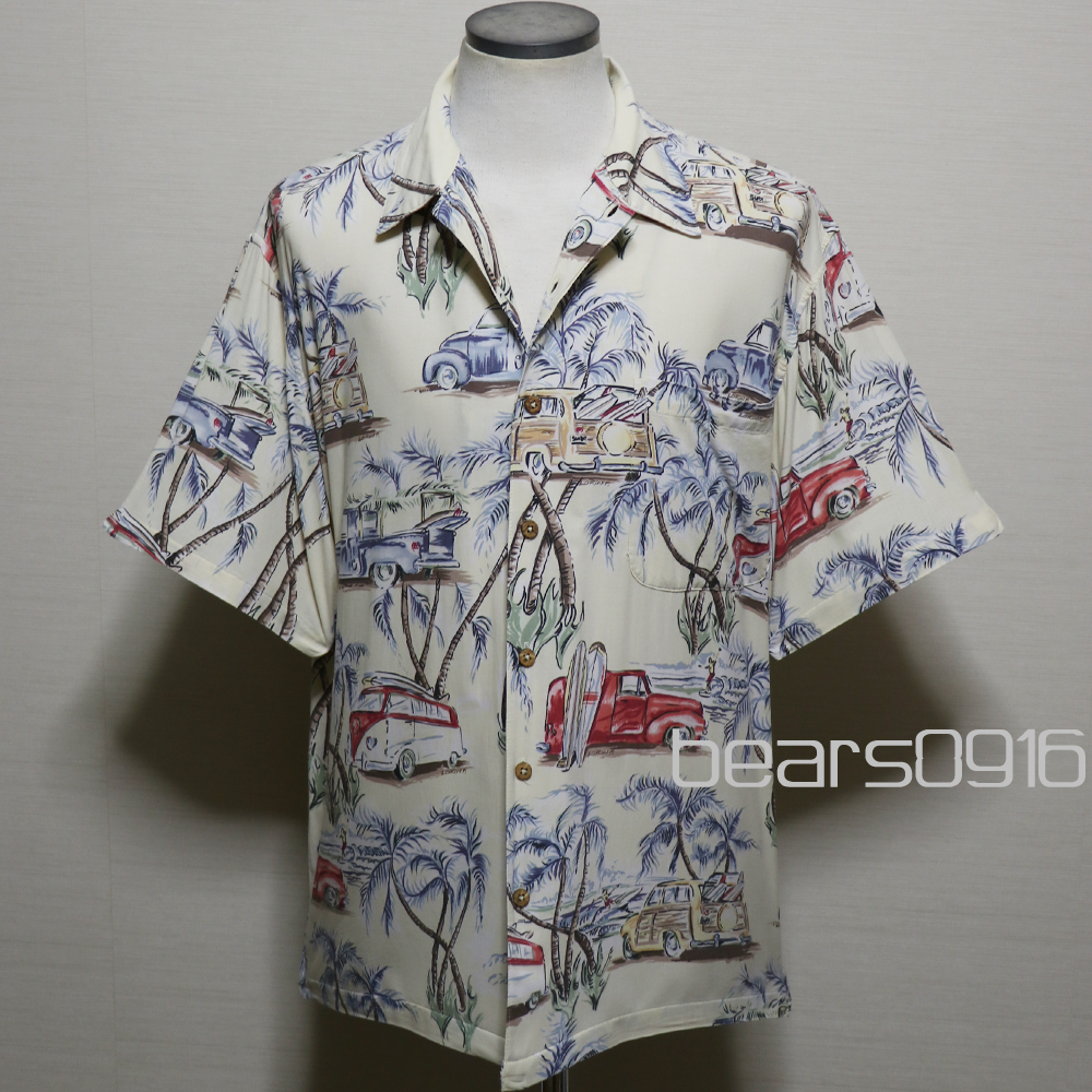 - アメリカ購入 美品 90年代 MADE IN USA Blue Water ブルーウォーター コットンレーヨン サーフボード&サーフカー 半袖アロハシャツ L