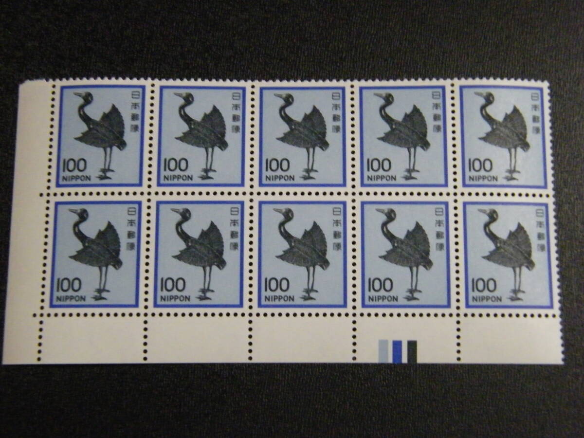 - 銀鶴 100円 カラーマーク下 10枚ブロック 未使用 1980年シリーズ