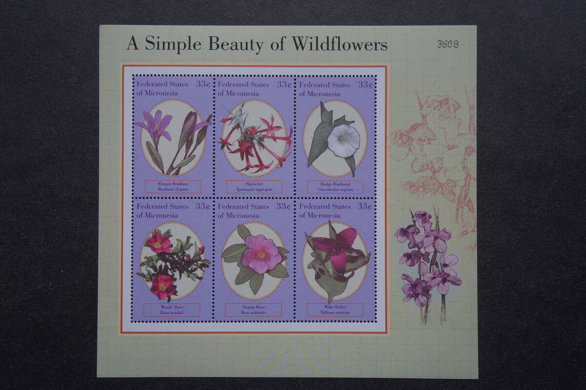 - 外国切手: ミクロネシア切手 「野生の花」 6種m/s 未使用