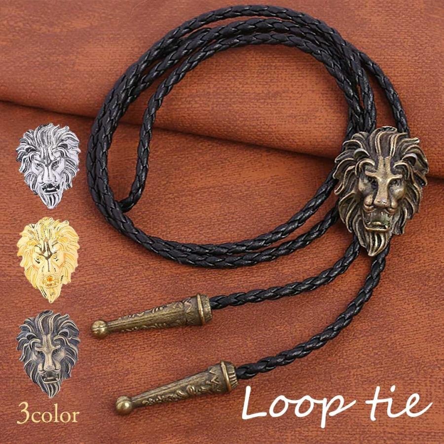 - 【3カラー】【購入後メッセージ下さい】ネクタイ ループタイ ライオン 百獣の王 全3色 ペンダント ジュエリー アクセサリー ネックレス
