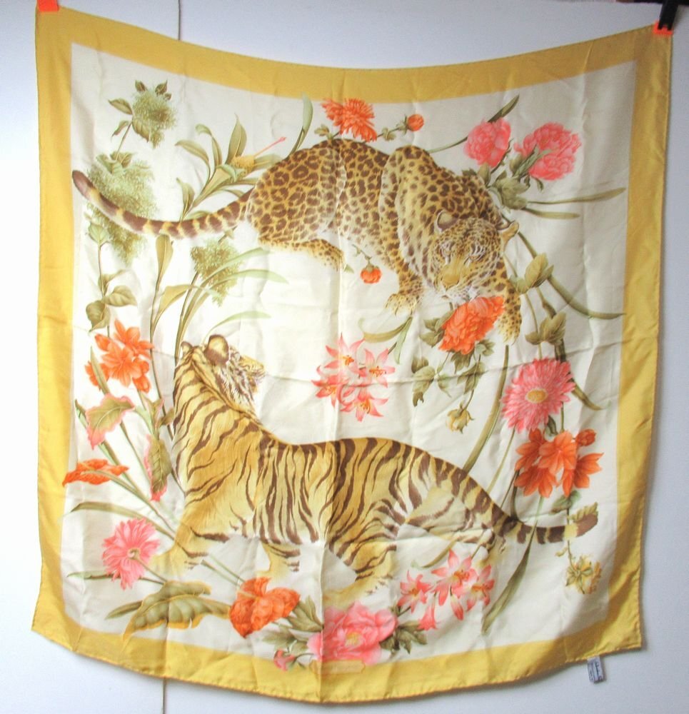 > ♪Salvatore Ferragamo(サルヴァトーレ フェラガモ/イタリア製)シルク100%/サイズ約86センチ×約85センチ/イエロー系